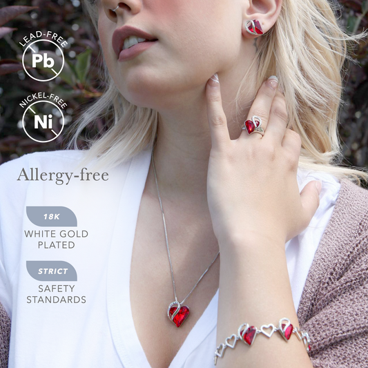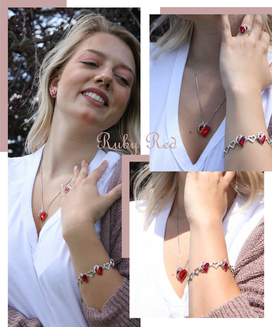 Leafael [Presented by Miss New York Austrian Crystal Rose Gold Plated Oval Double Circle Shape Red Magma Jewelry Set Earrings Pendant Necklace, 18" +