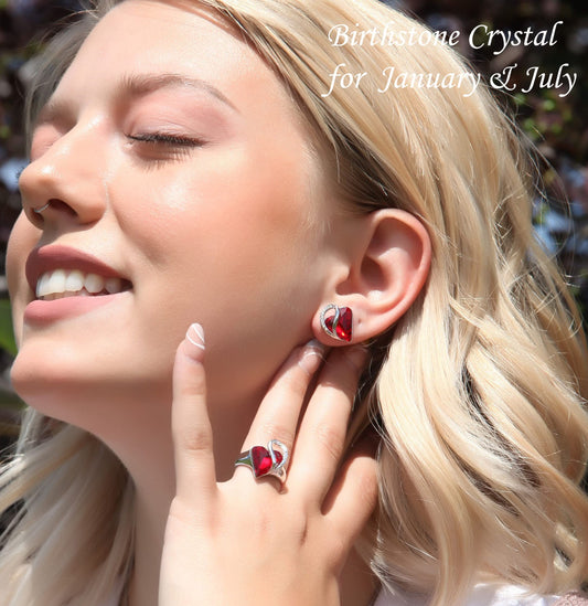 Leafael Infinity Love Heart Stud Earrings with Birthstone Crystal Women's Gifts, Silver-tone