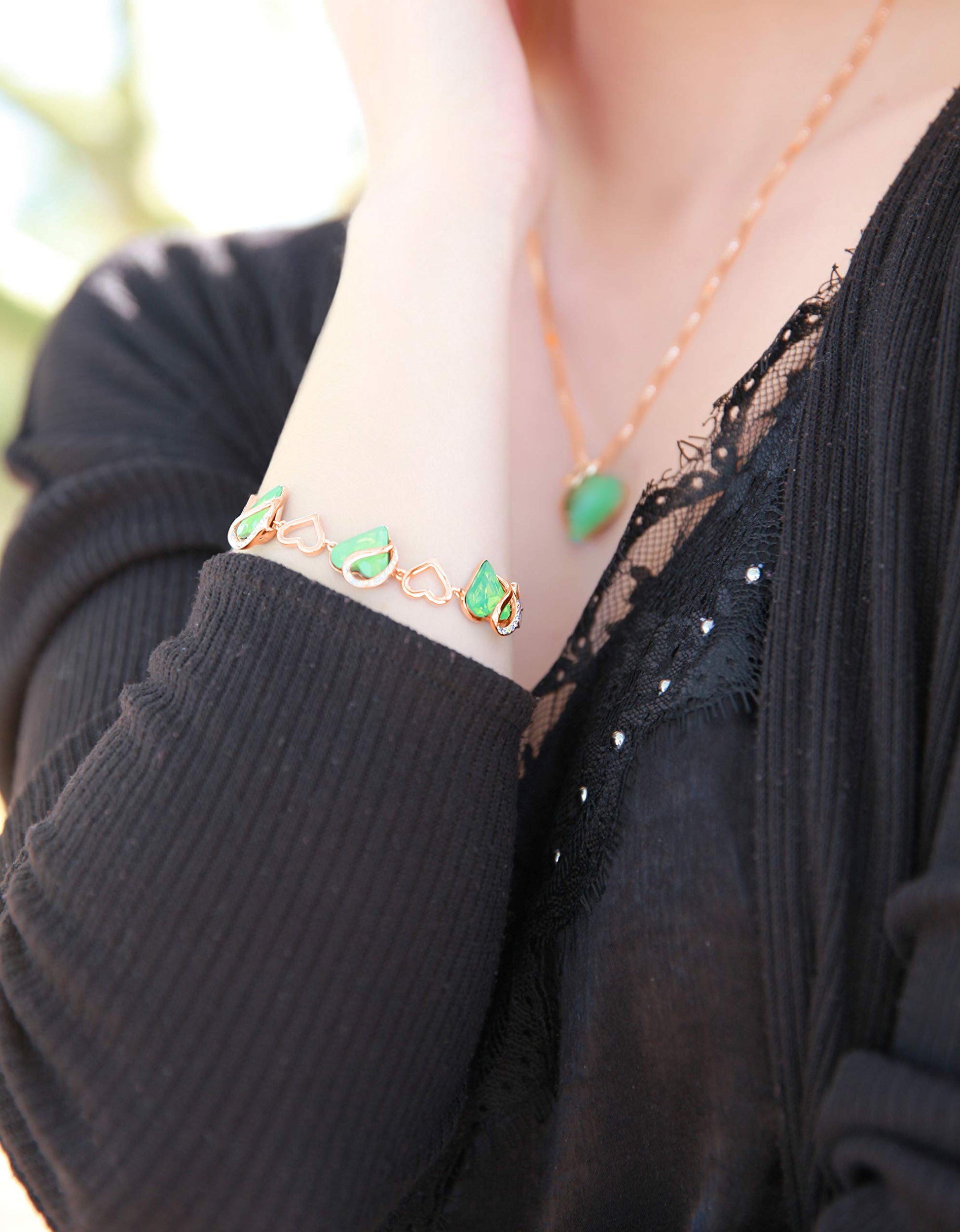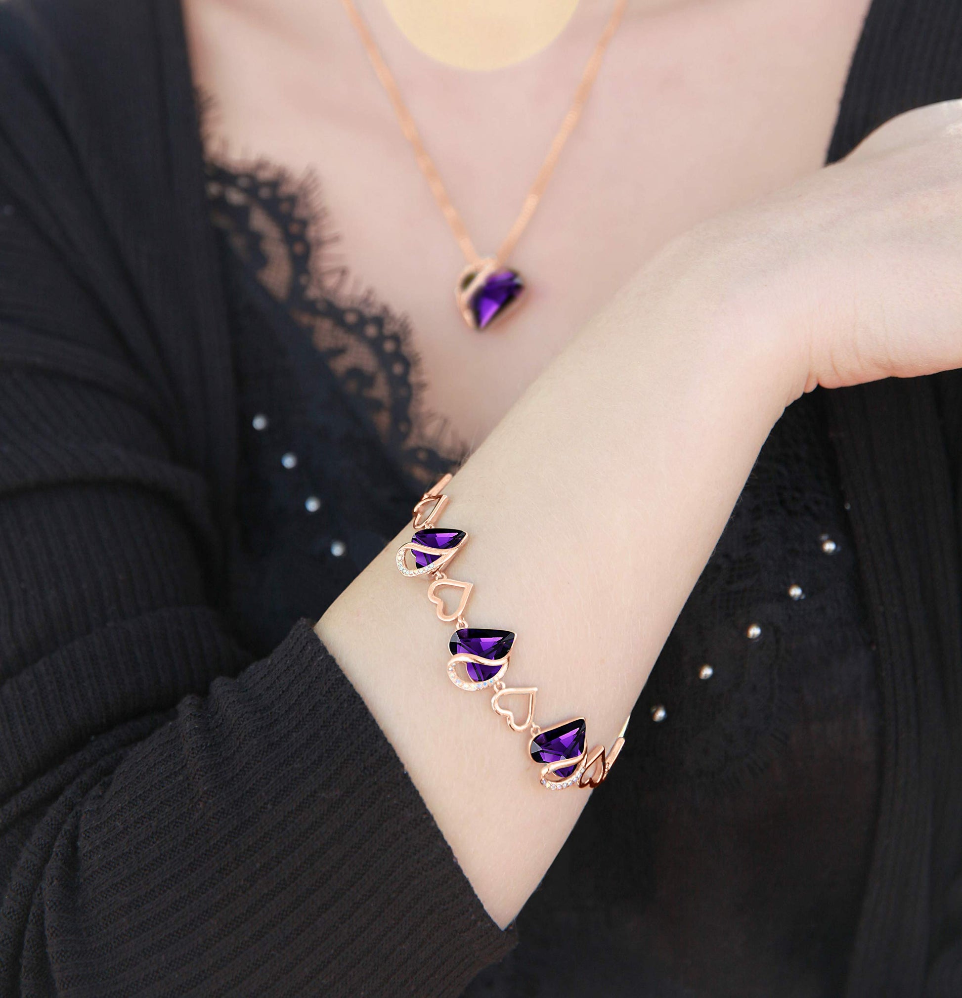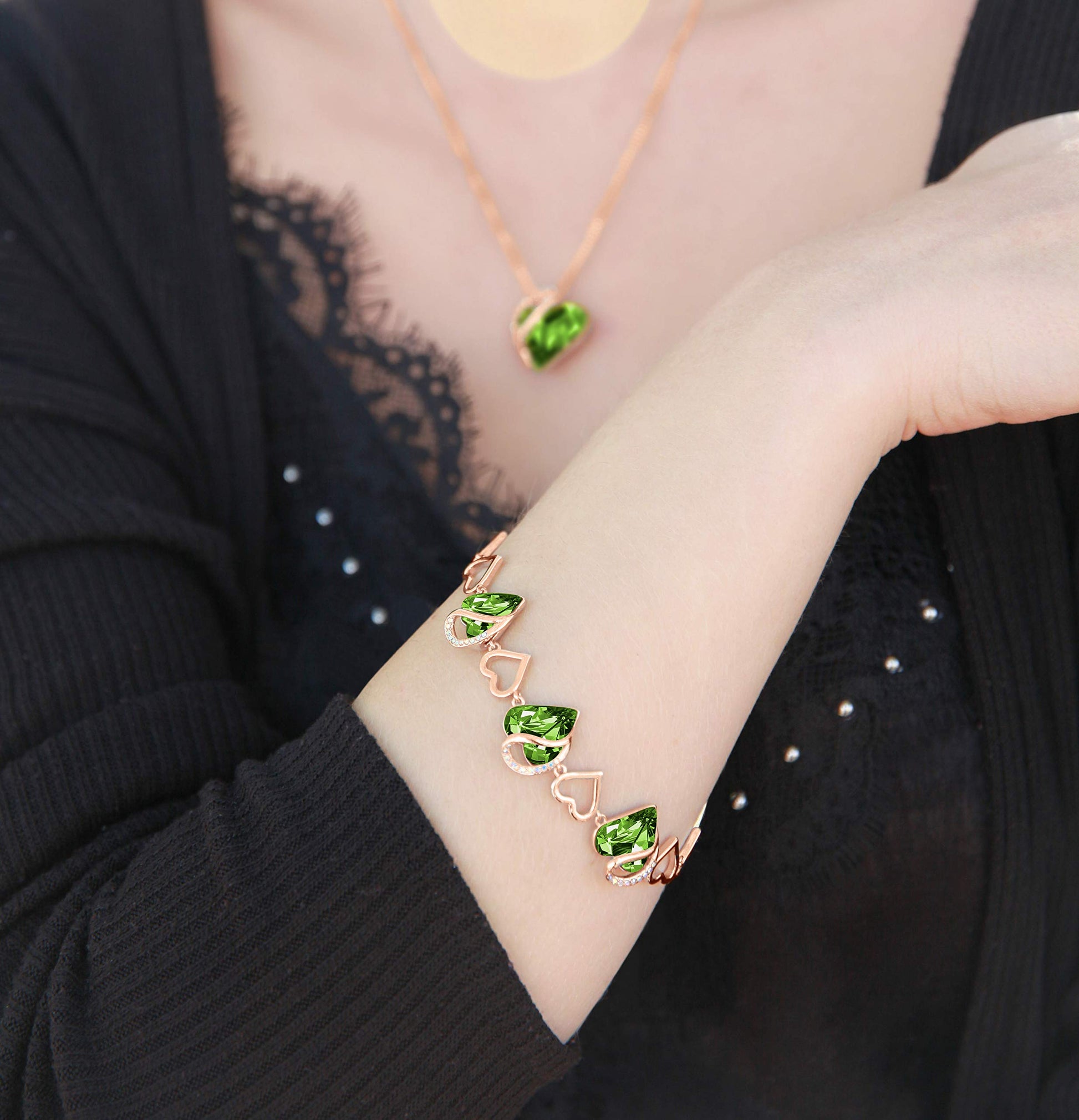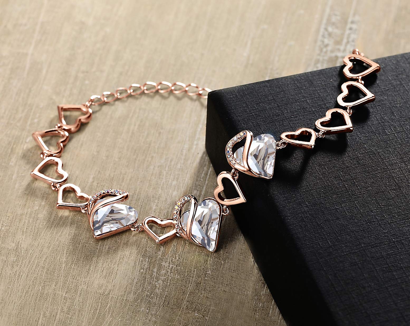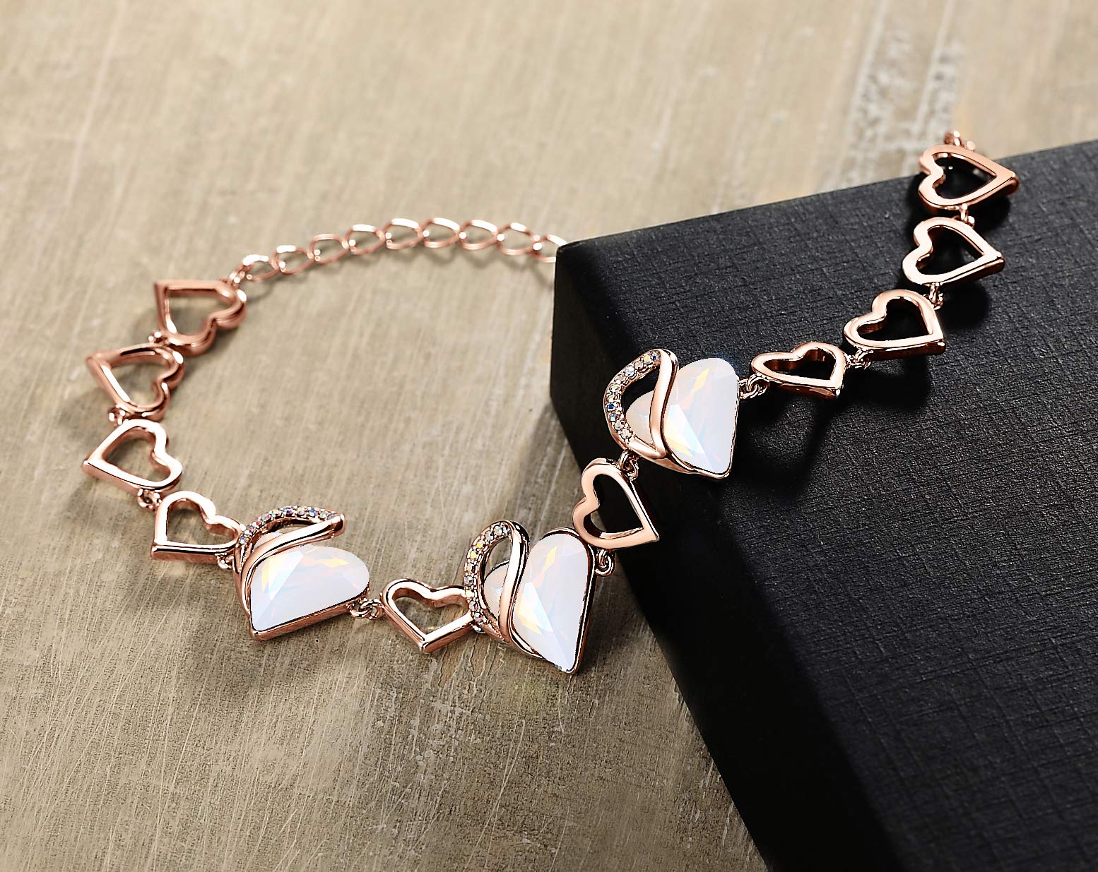 Leafael 18K Rose Gold Plated Love Heart Link Bracelet with Healing Stone Crystal Jewelry Gifts for Women, 7" Chain + 2" Extender