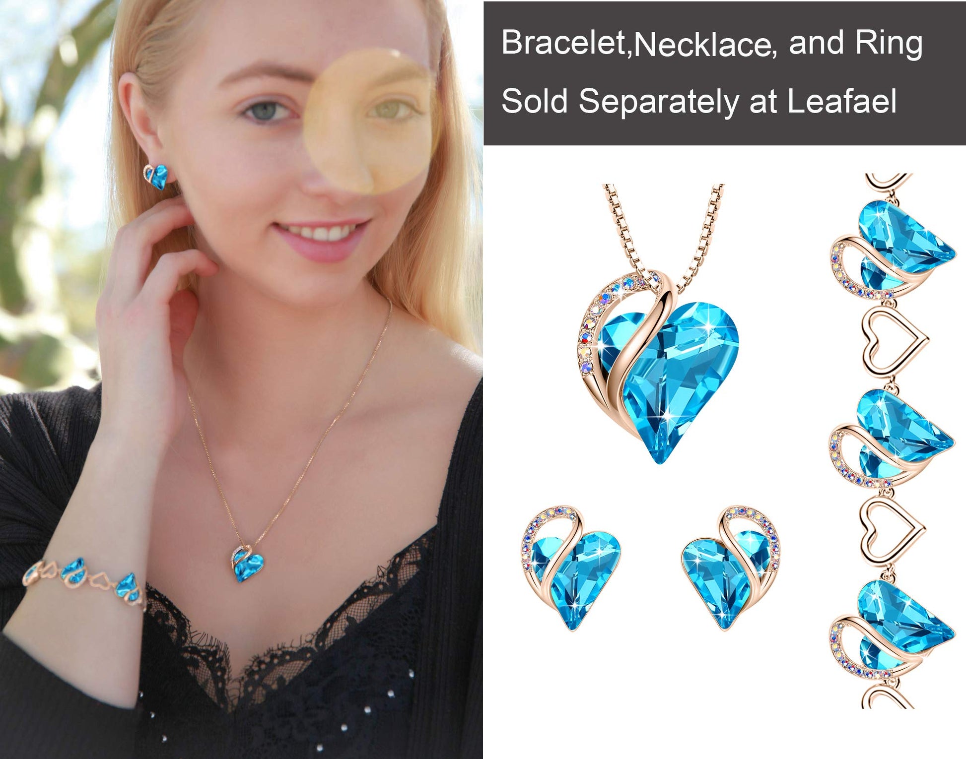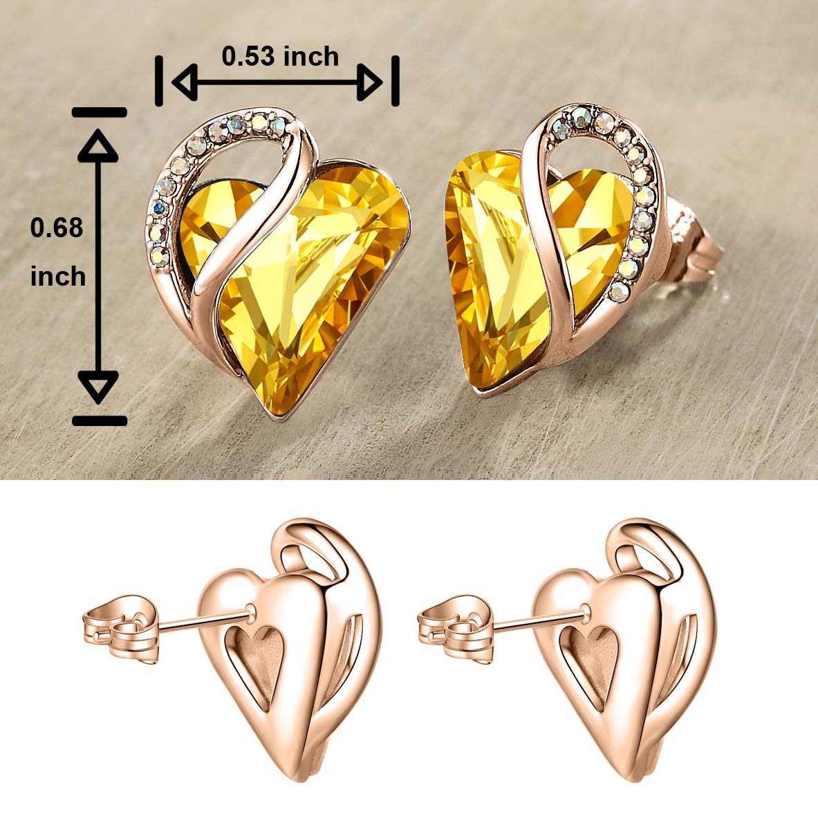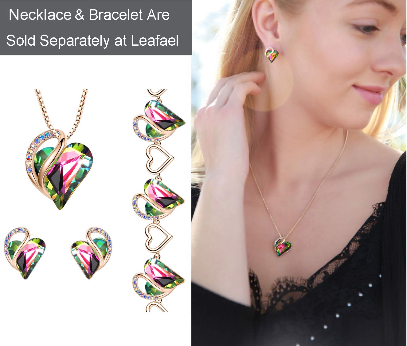 Leafael 18K Rose Gold Plated Love Heart Stud Earrings with Healing Stone Crystal Jewelry Gifts for Women