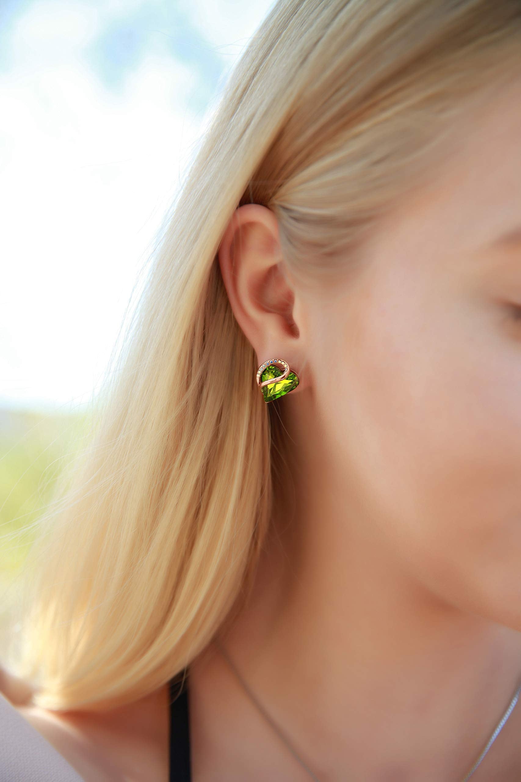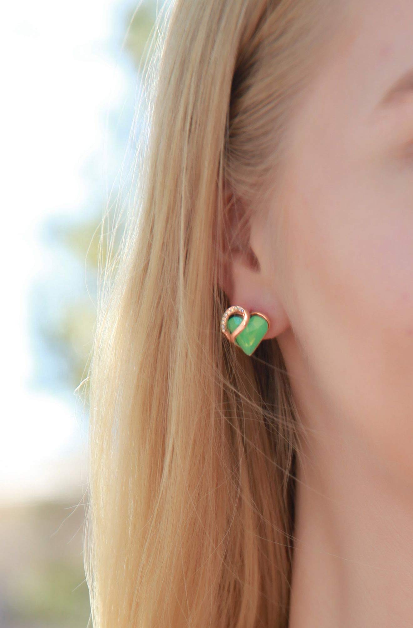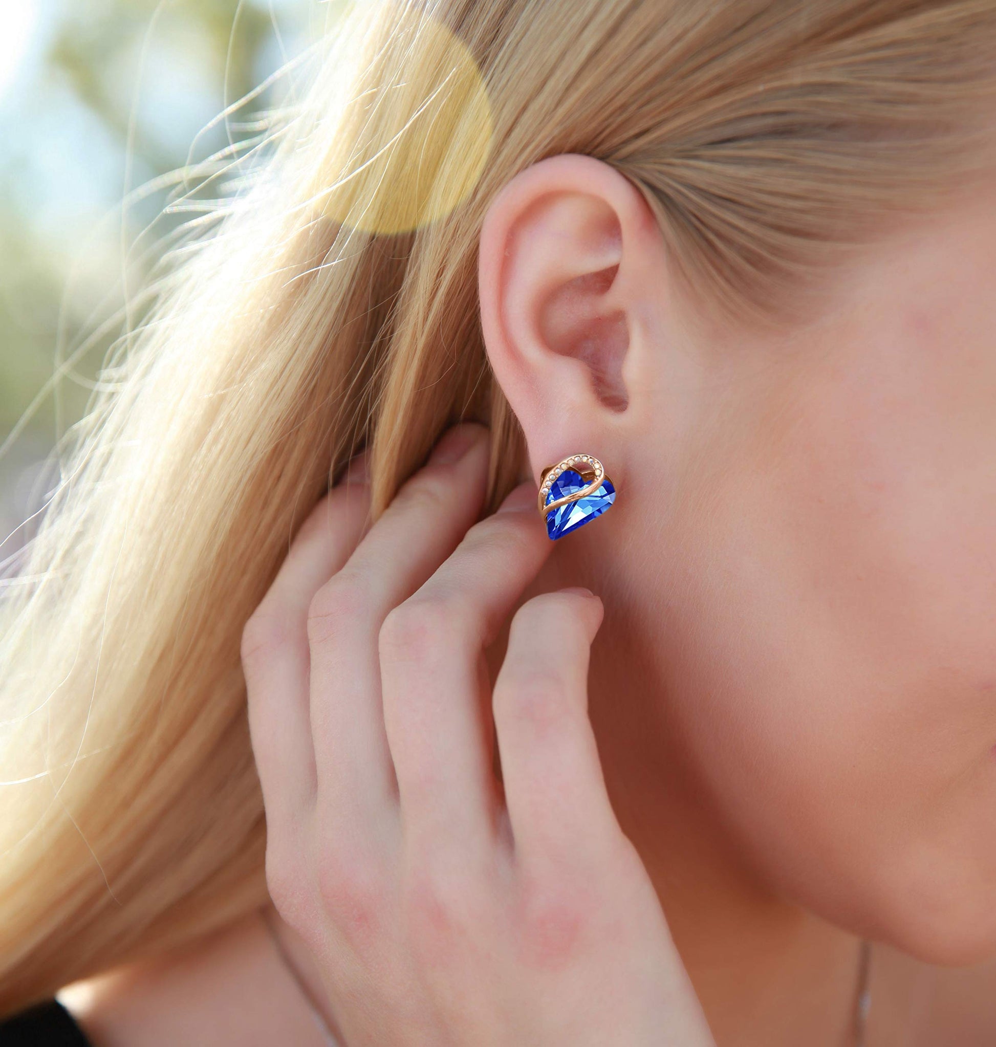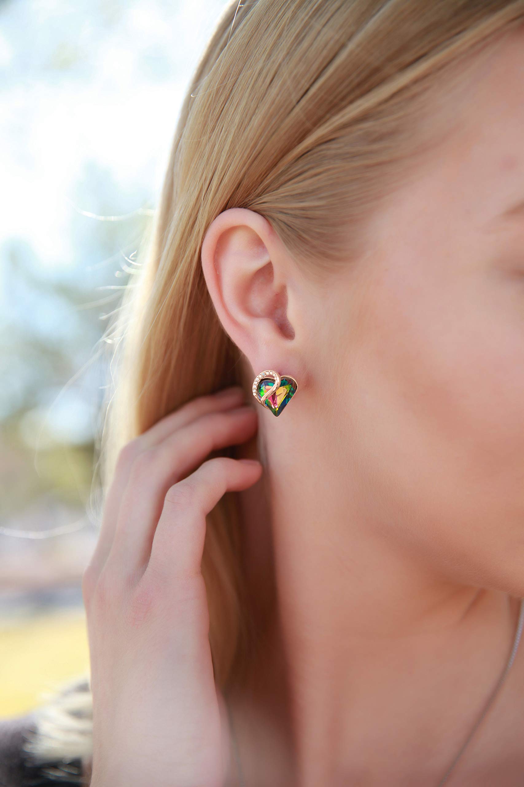 Leafael 18K Rose Gold Plated Love Heart Stud Earrings with Healing Stone Crystal Jewelry Gifts for Women