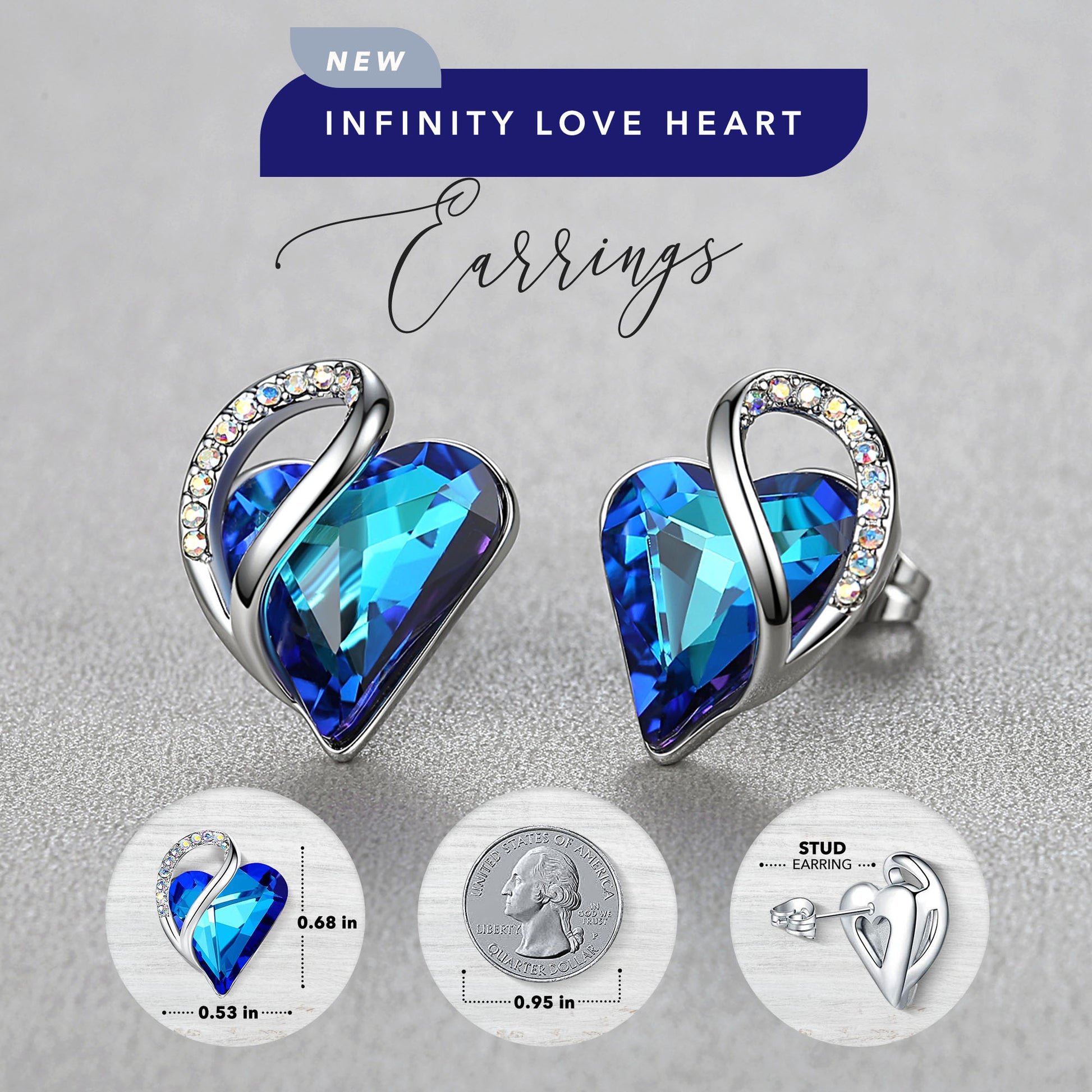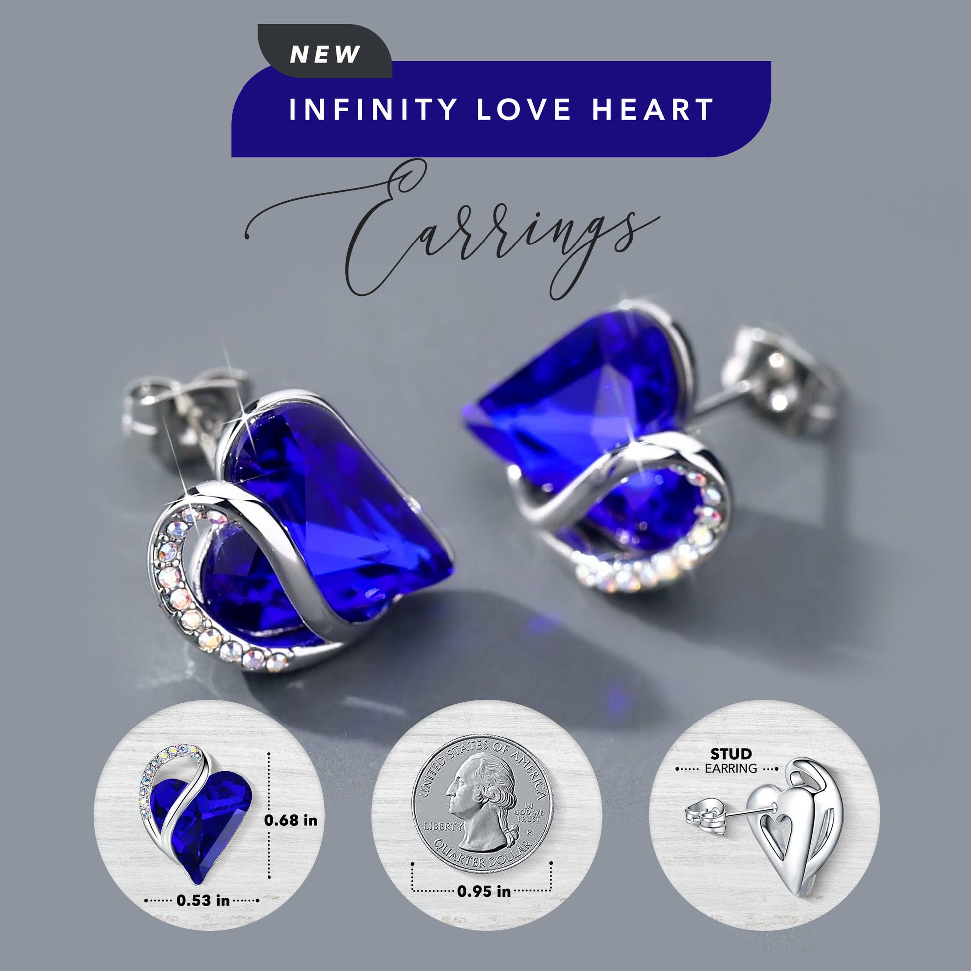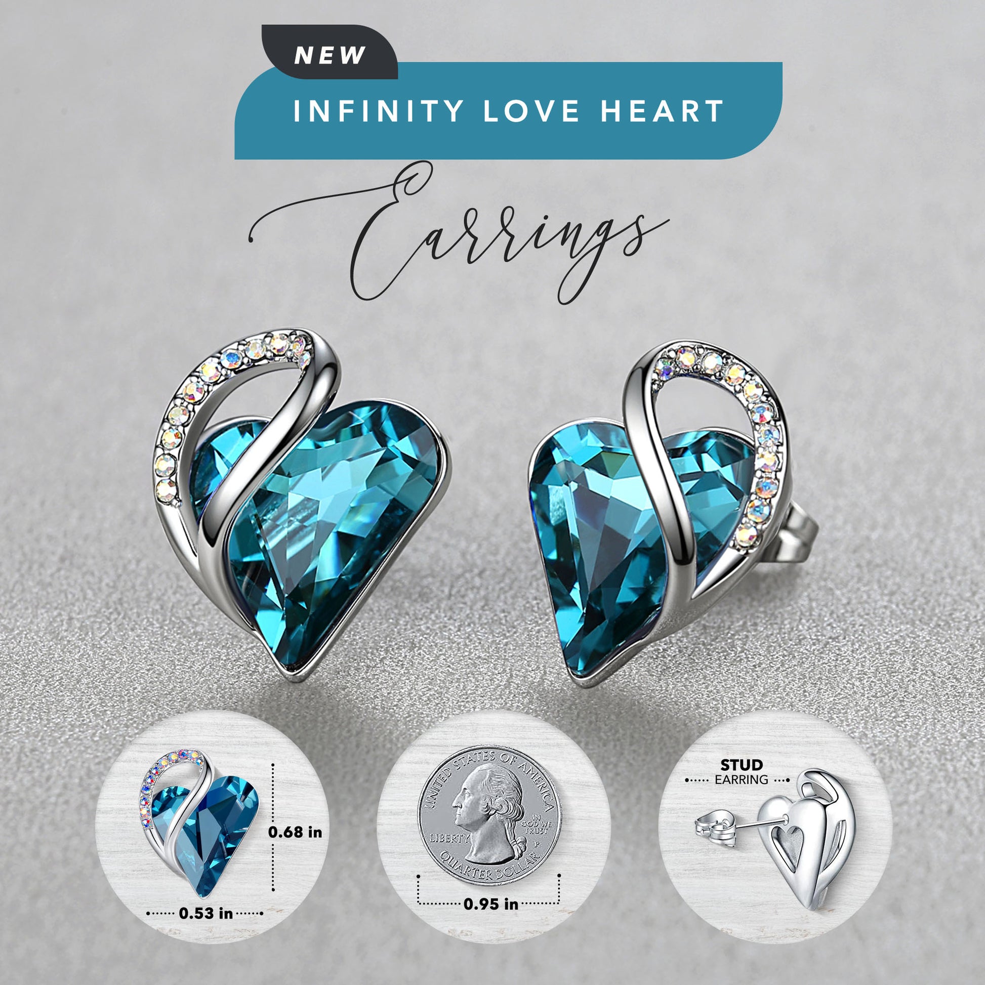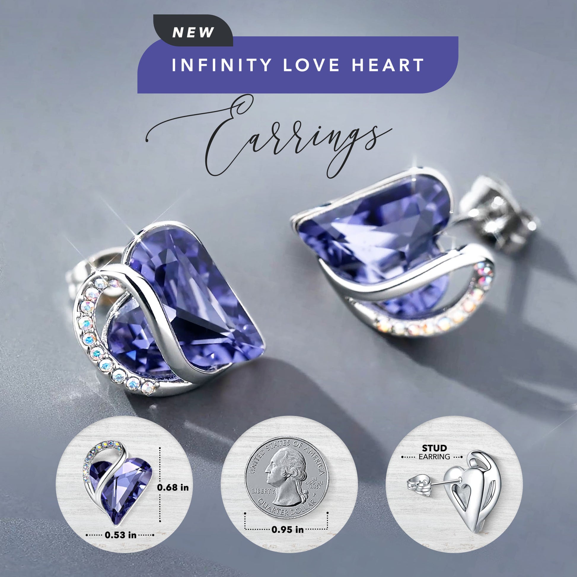 Leafael Infinity Love Heart Stud Earrings with Birthstone Crystal Women's Gifts, Silver-tone