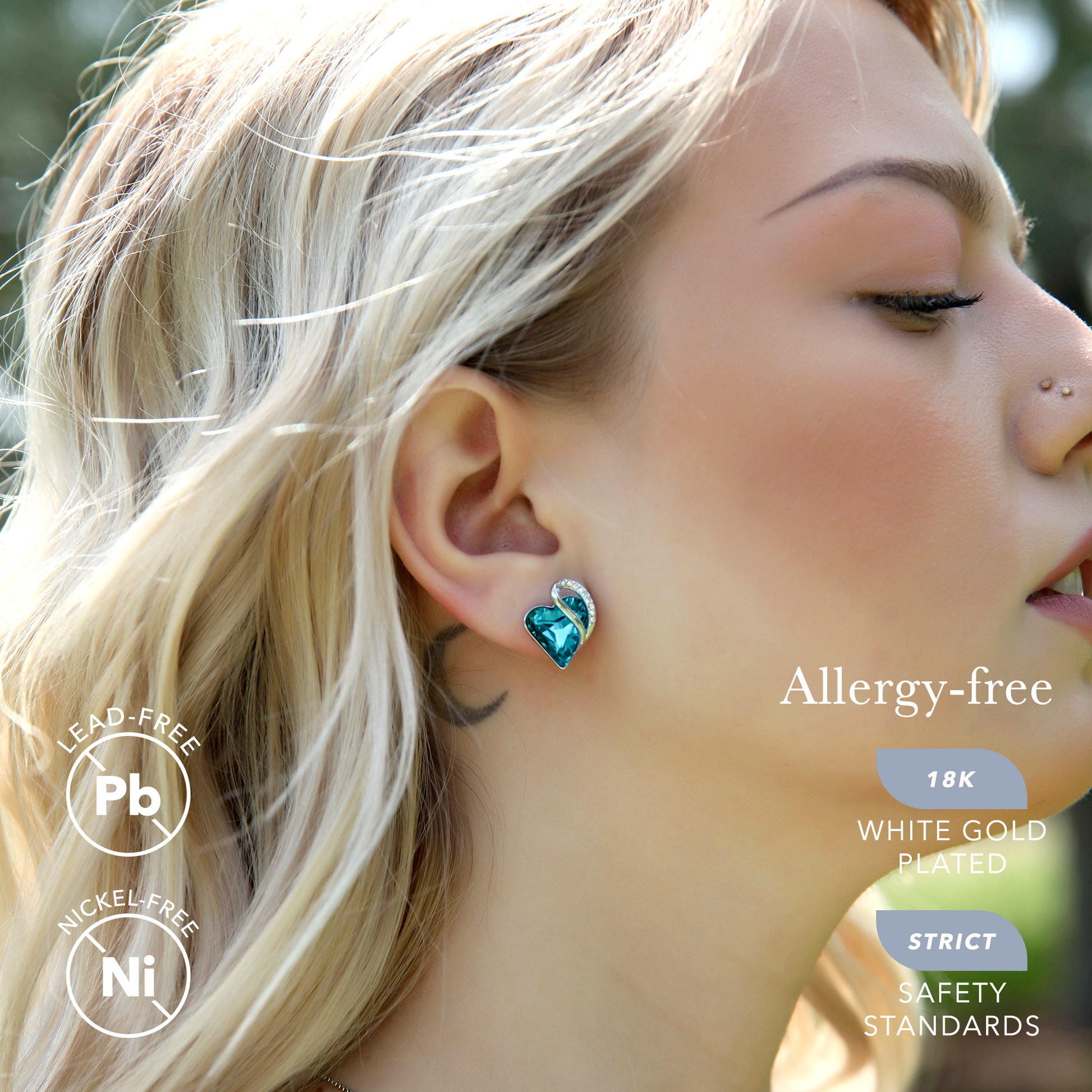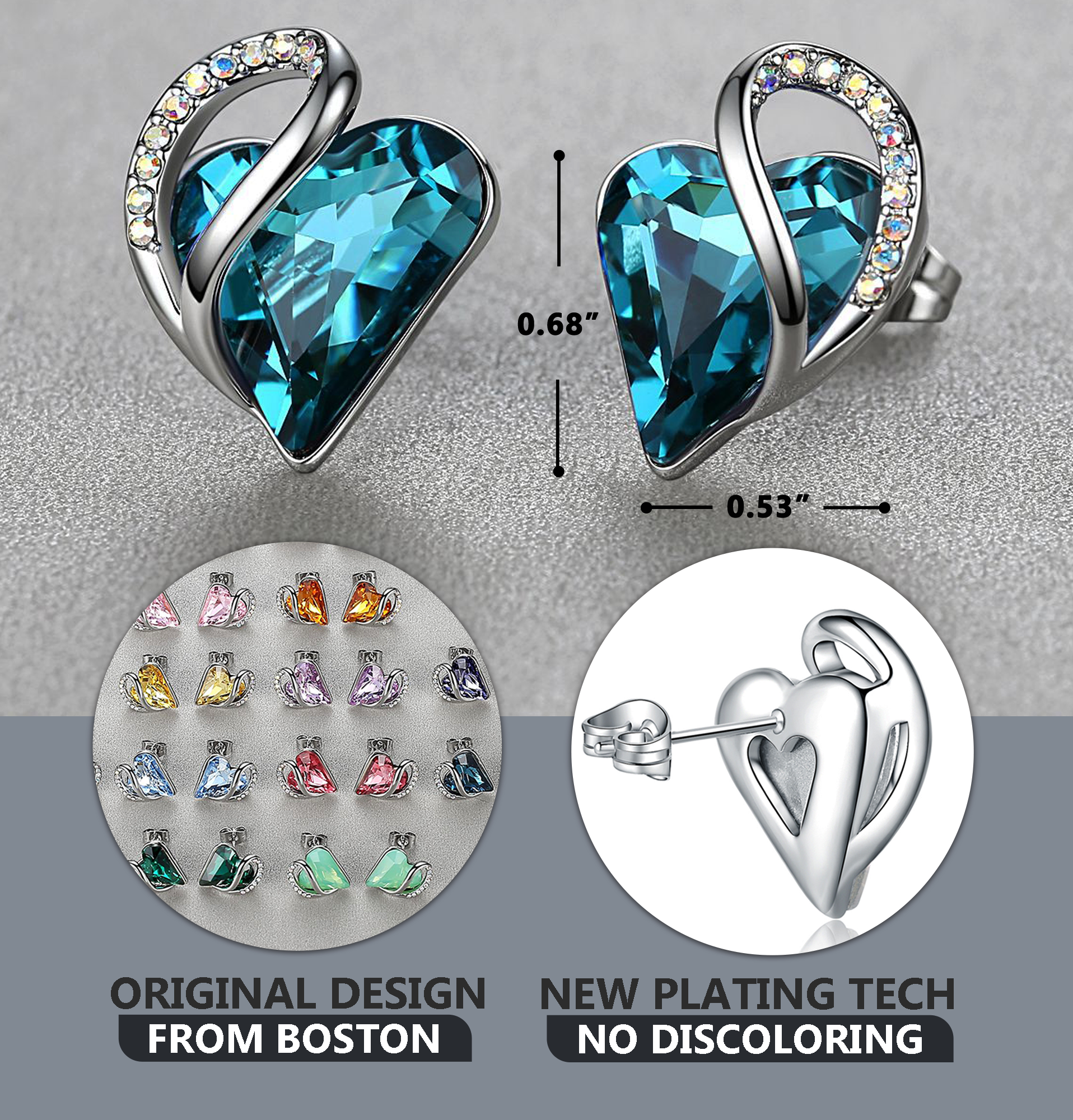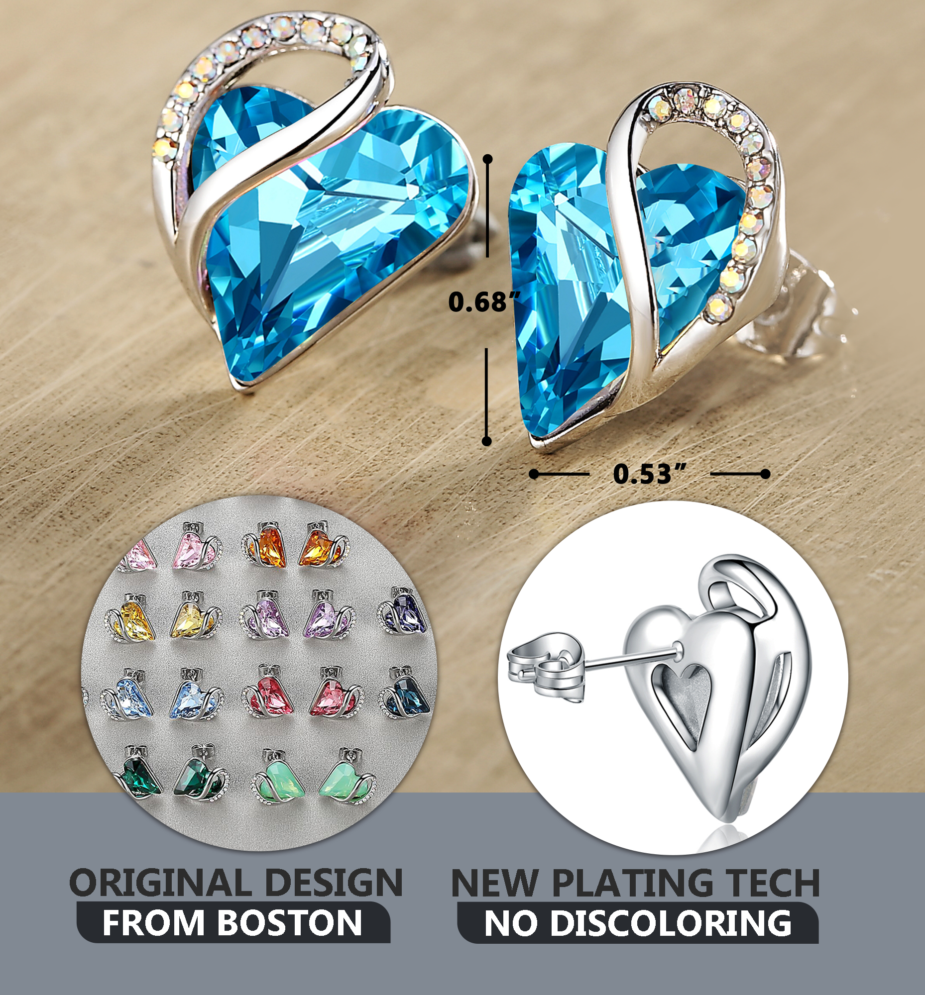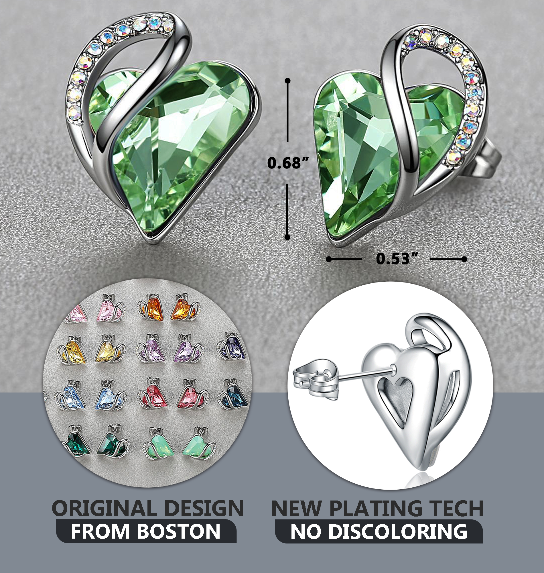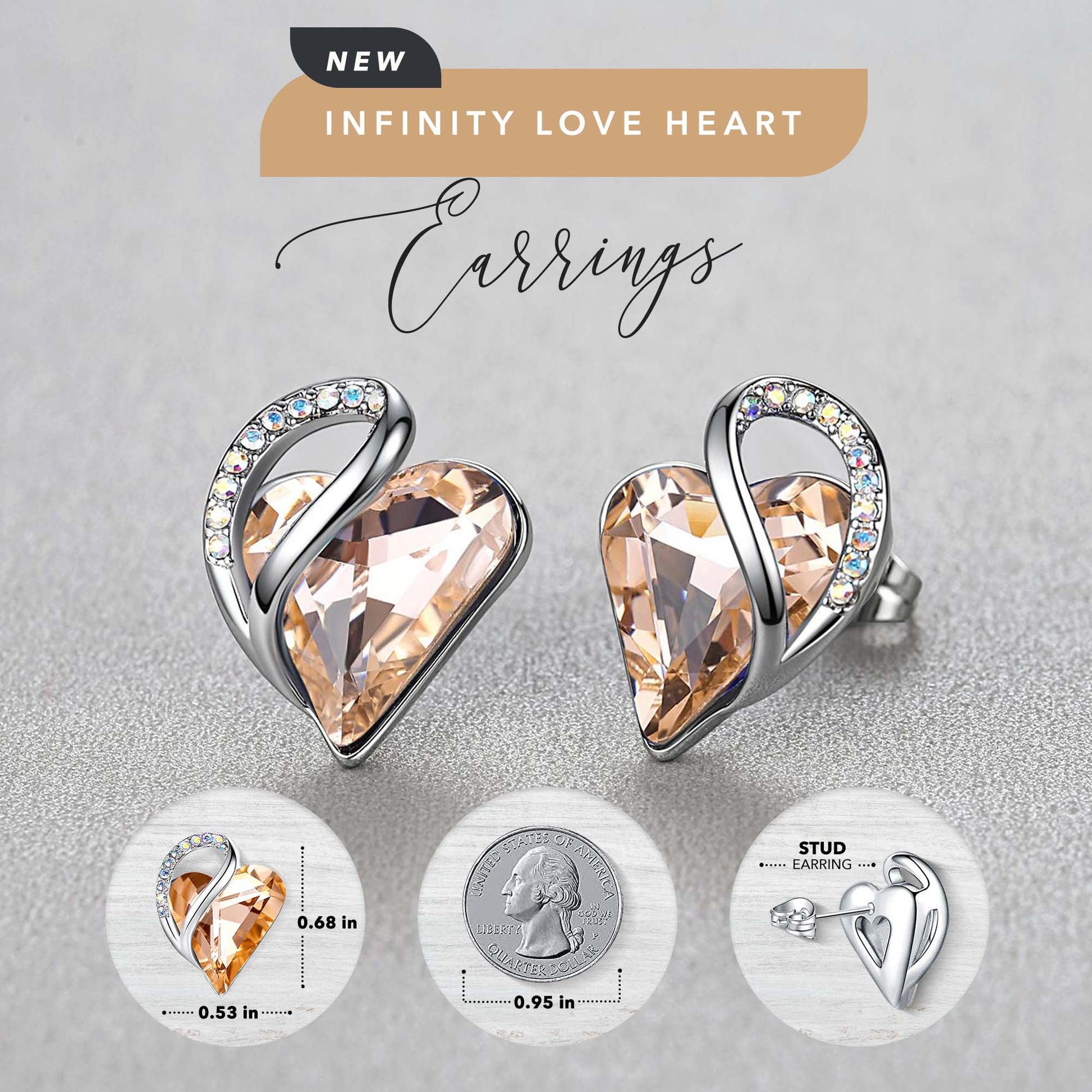 Leafael Infinity Love Heart Stud Earrings with Birthstone Crystal Women's Gifts, Silver-tone