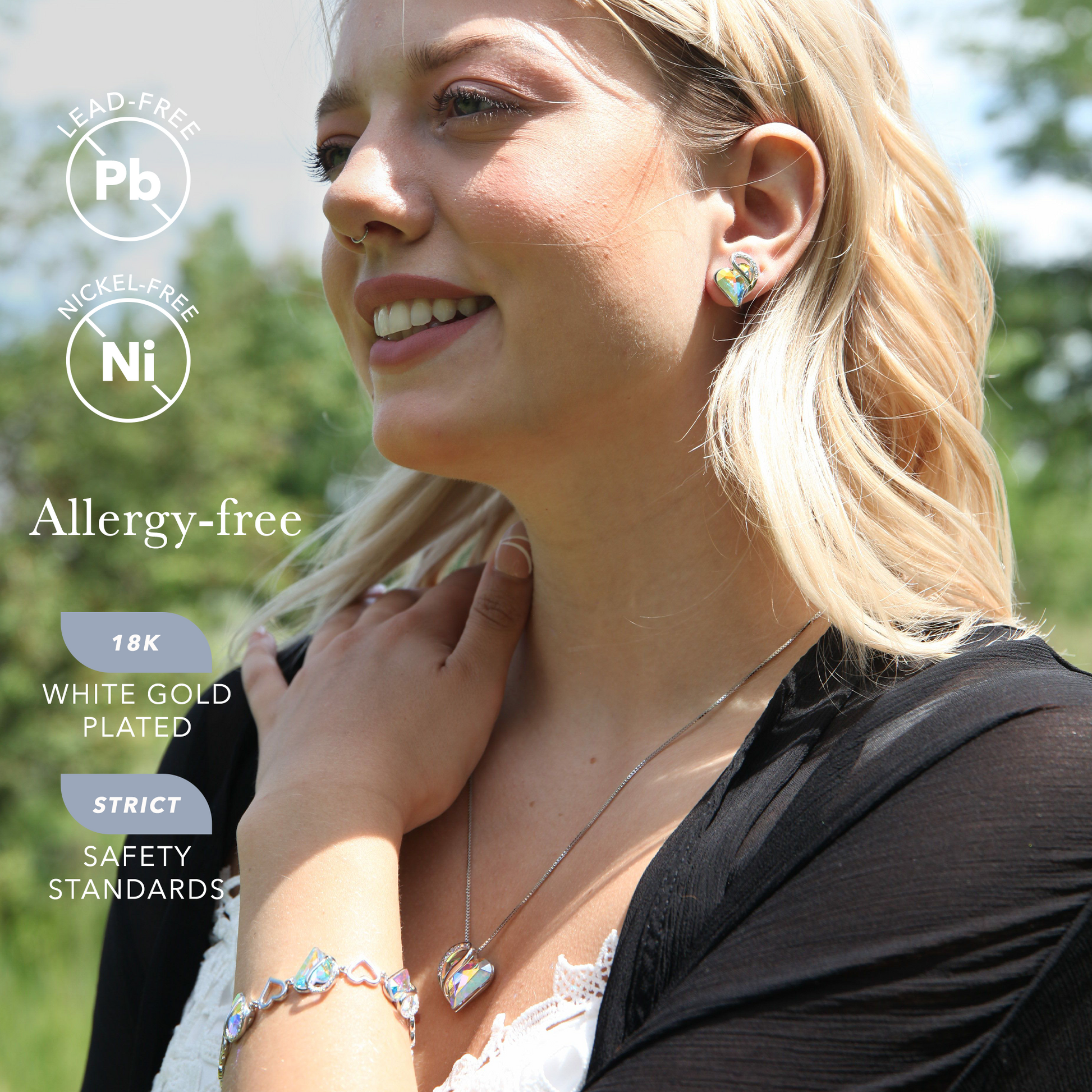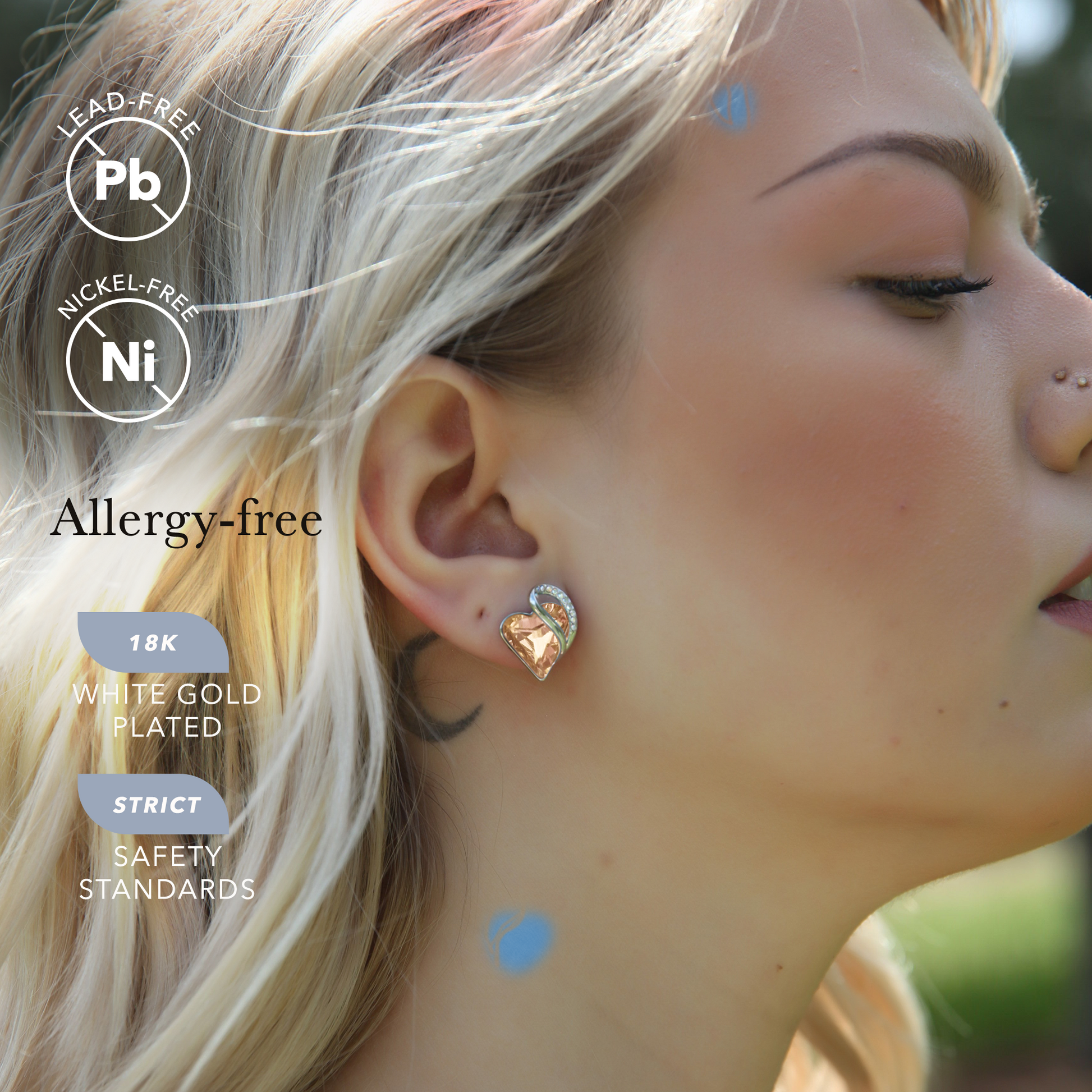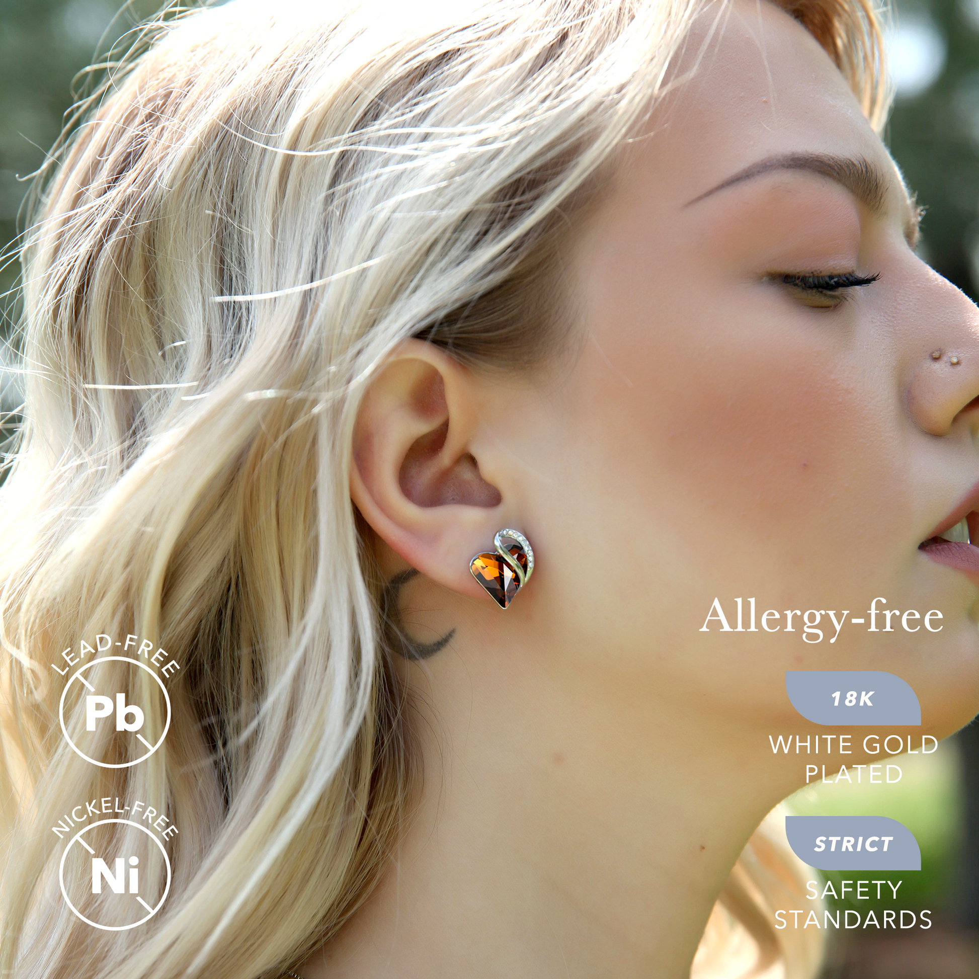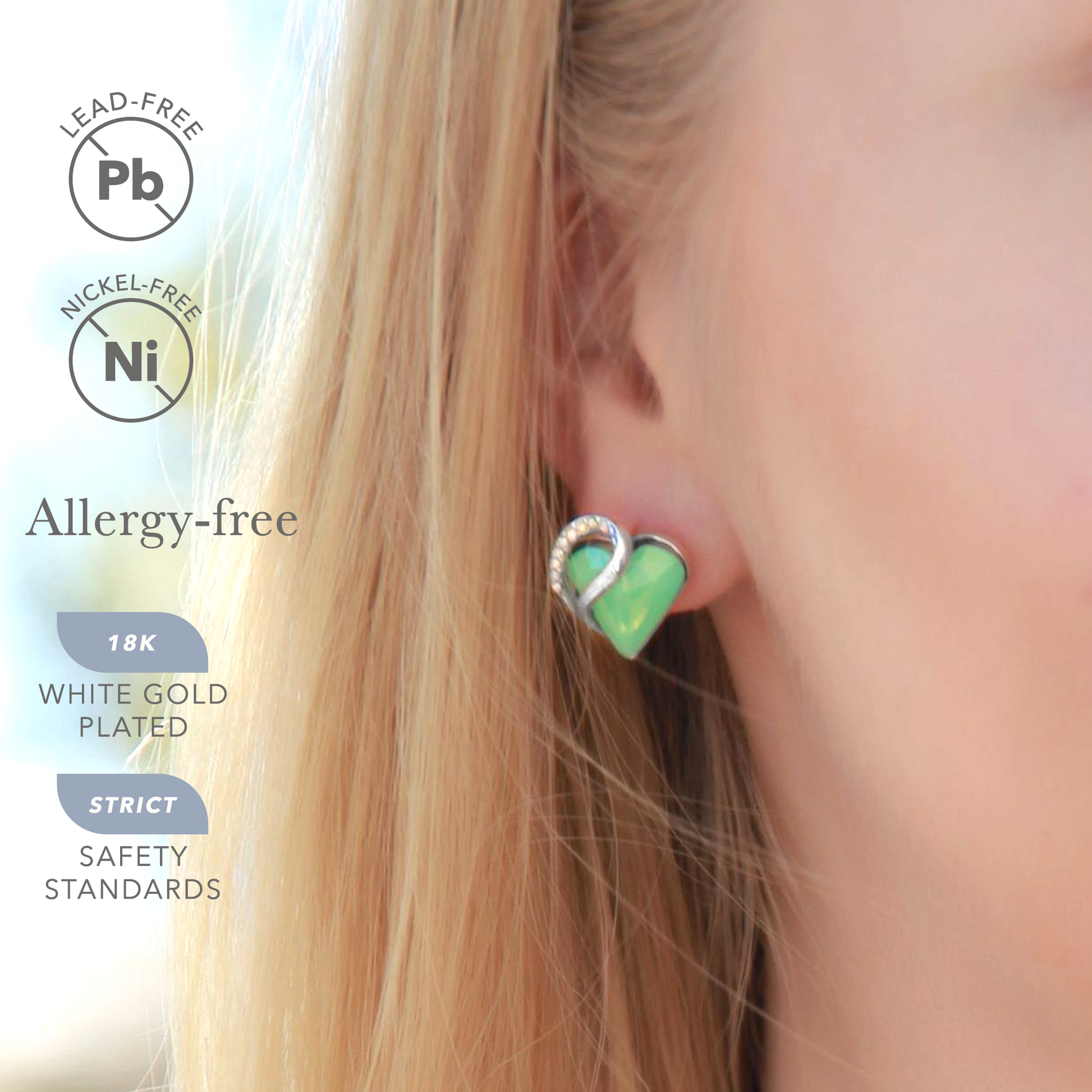 Leafael Infinity Love Heart Stud Earrings with Birthstone Crystal Women's Gifts, Silver-tone
