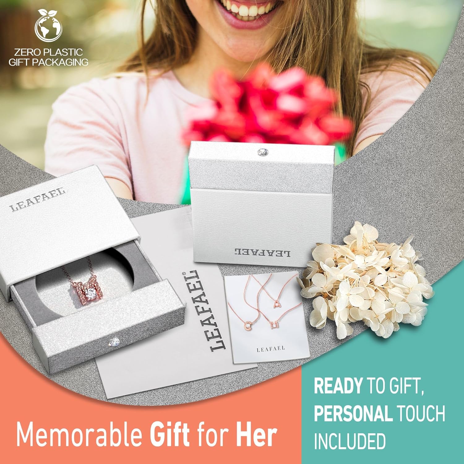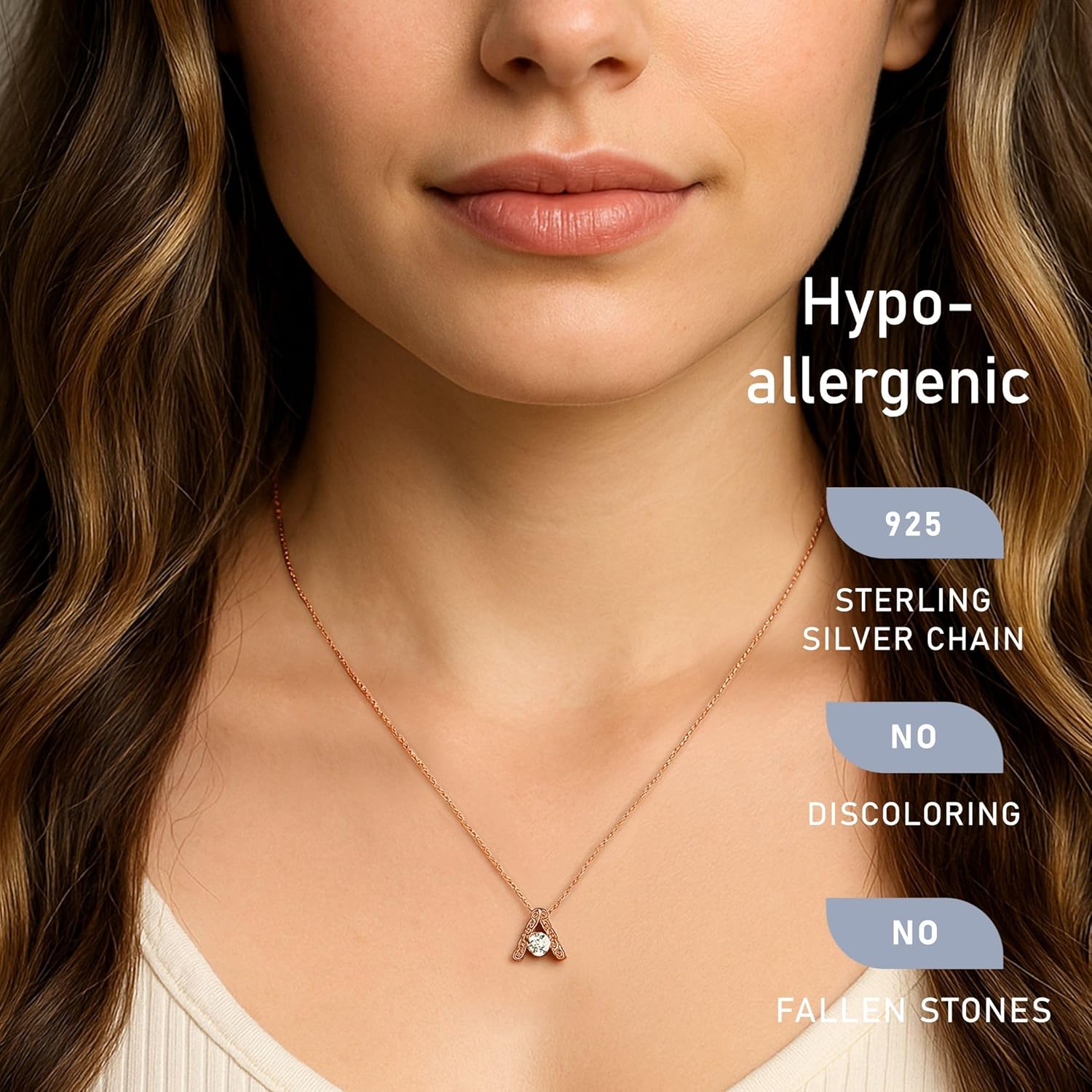 Leafael Initial Letter Necklaces for Women – Personalized 18K Rose Gold Plated Pendant Jewelry with Sterling Silver Chain, Monogram Gift A-Z, 16"+2" Choker
