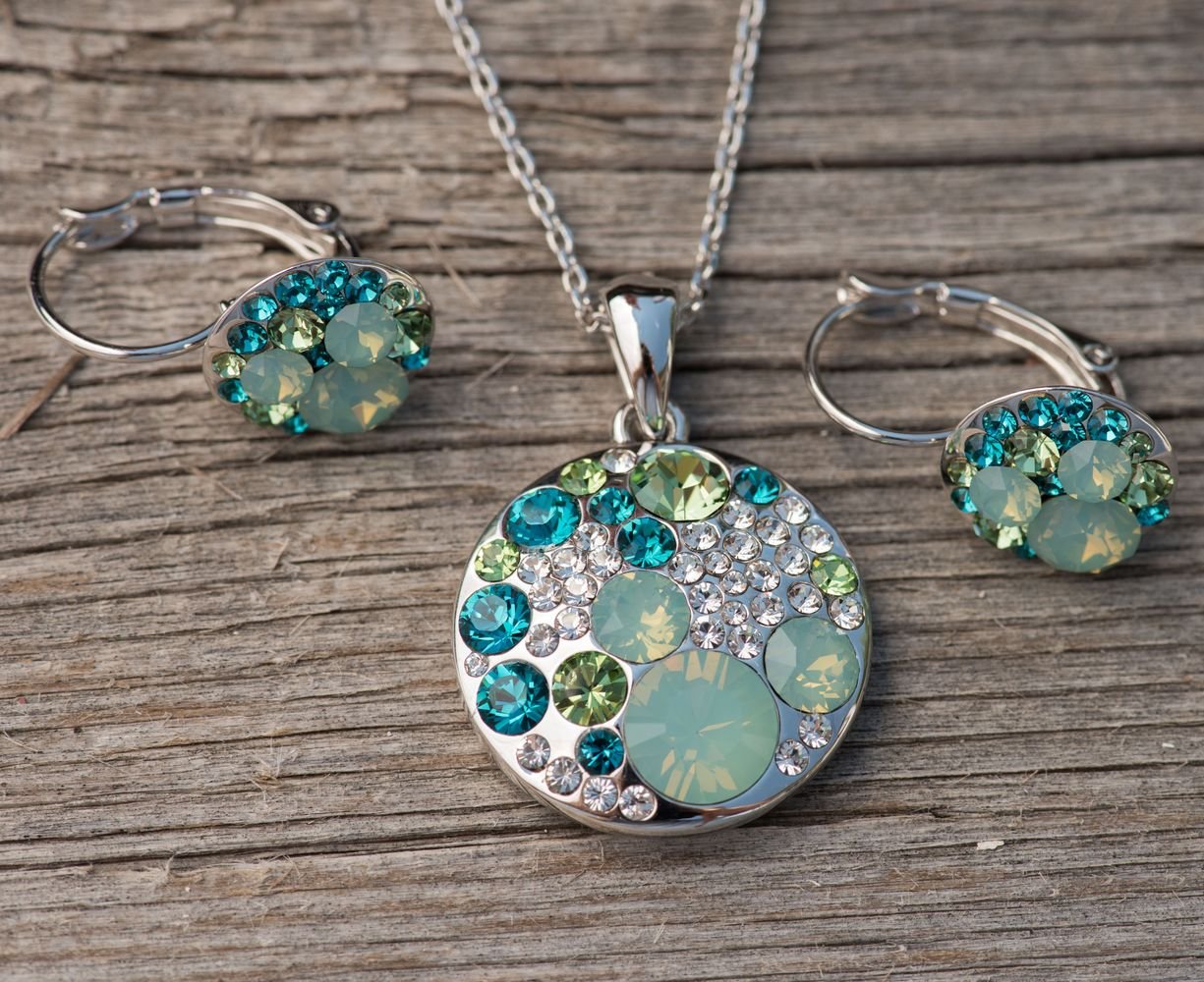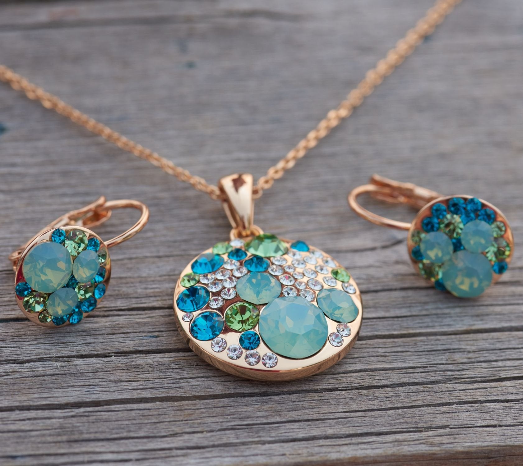 Leafael Ocean Bubble Women's Crystal Jewelry Set Costume Fashion Pendant Necklace Earring Set, Silver Tone or 18K Rose Gold Plated, 18" + 2", Gifts for Women