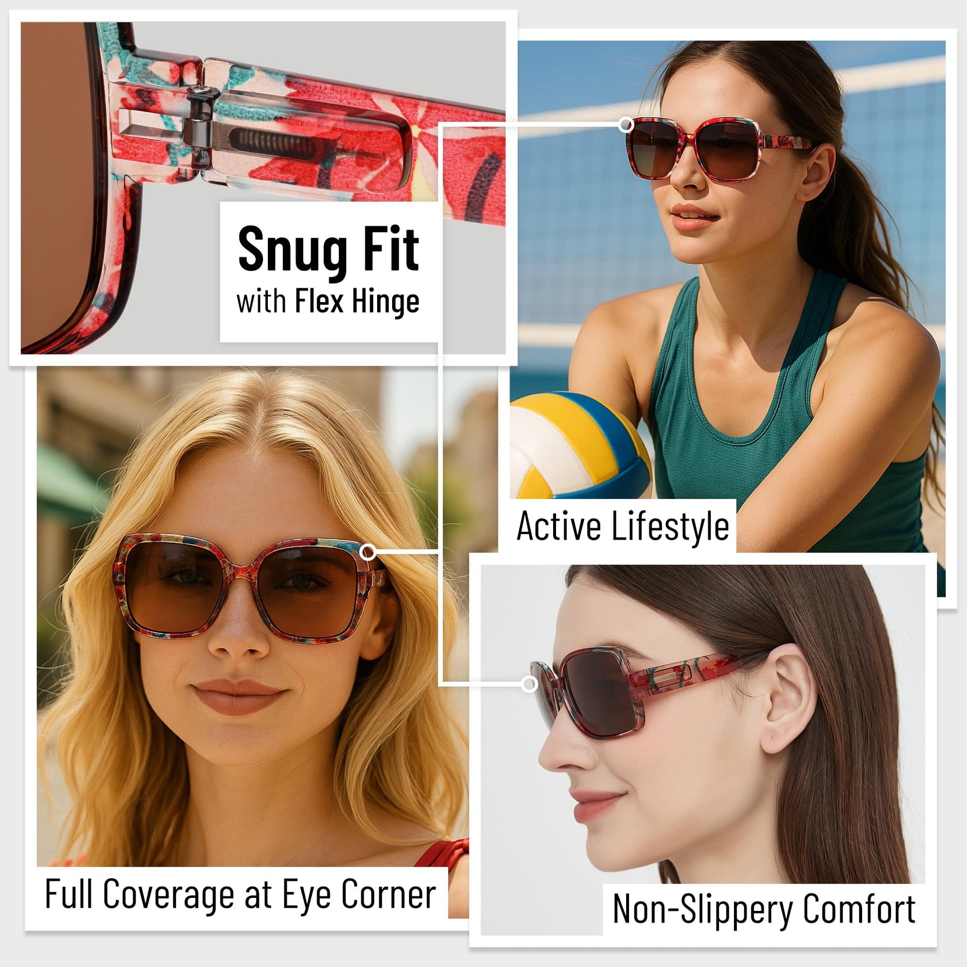Leafael Polarized Oversized Sunglasses for Women, Red Floral Square Frame, UV400 Protection Shades, Trendy Retro Designer Style