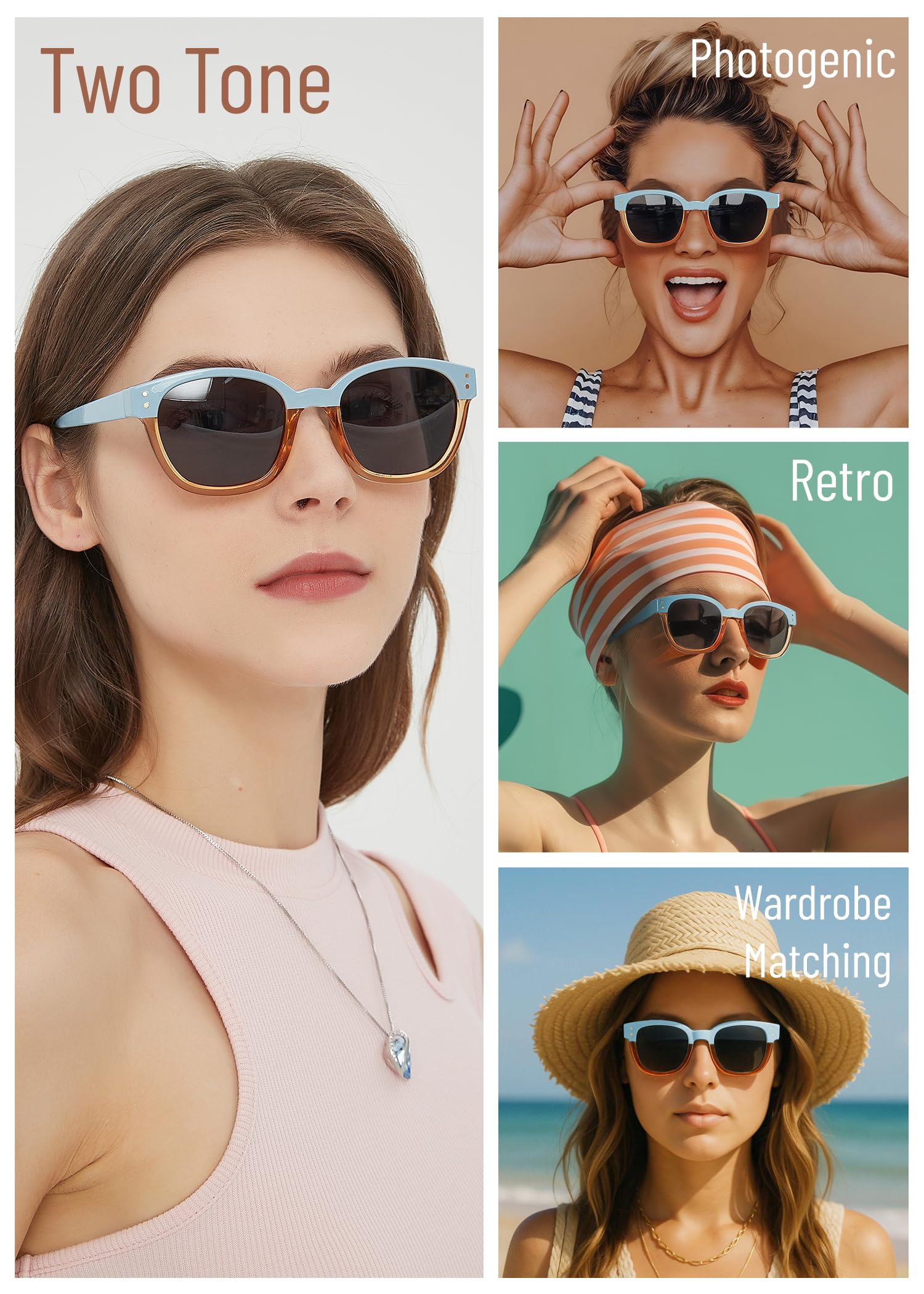 Leafael Polarized Sunglasses Women's Trendy Two Tone Design, UV400 100% Protection, Retro Square Frame, Lifestyle & Active