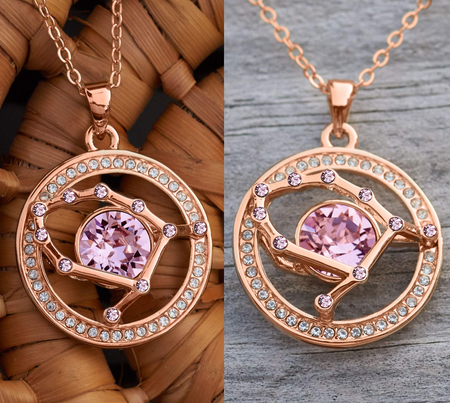 Leafael "Superstar Zodiac Constellation Pendant Necklace Made with Premium Crystal Horoscope Jewelry, Gold or Rose Gold Plated, 18"+ 2"