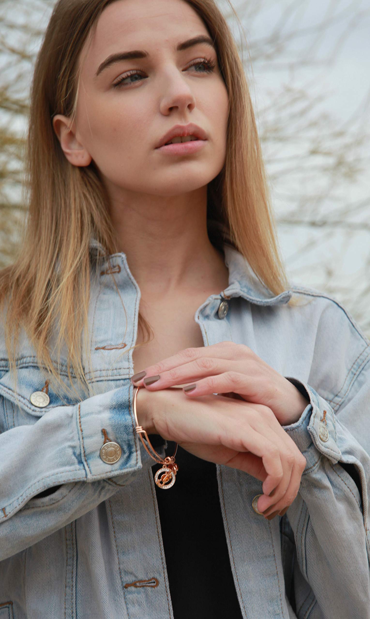 Leafael Superstar Zodiac Expandable Bangle Bracelet Made with Premium Crystals Horoscope Constellation October November Birthstone Topaz Brown Jewelry, Rose Gold Plated, 7"